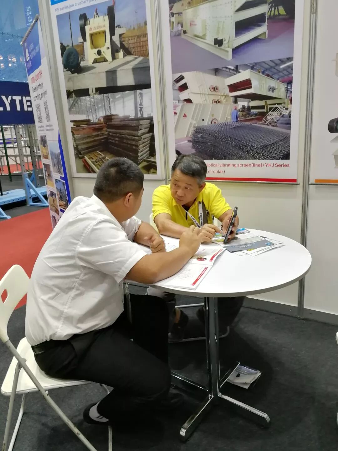 磊蒙工作人員現(xiàn)場為來賓介紹磊蒙在礦山破碎篩分領(lǐng)域的產(chǎn)品技術(shù)以及精品案例,賓主盡歡,在現(xiàn)場獲得了良好的效果。
